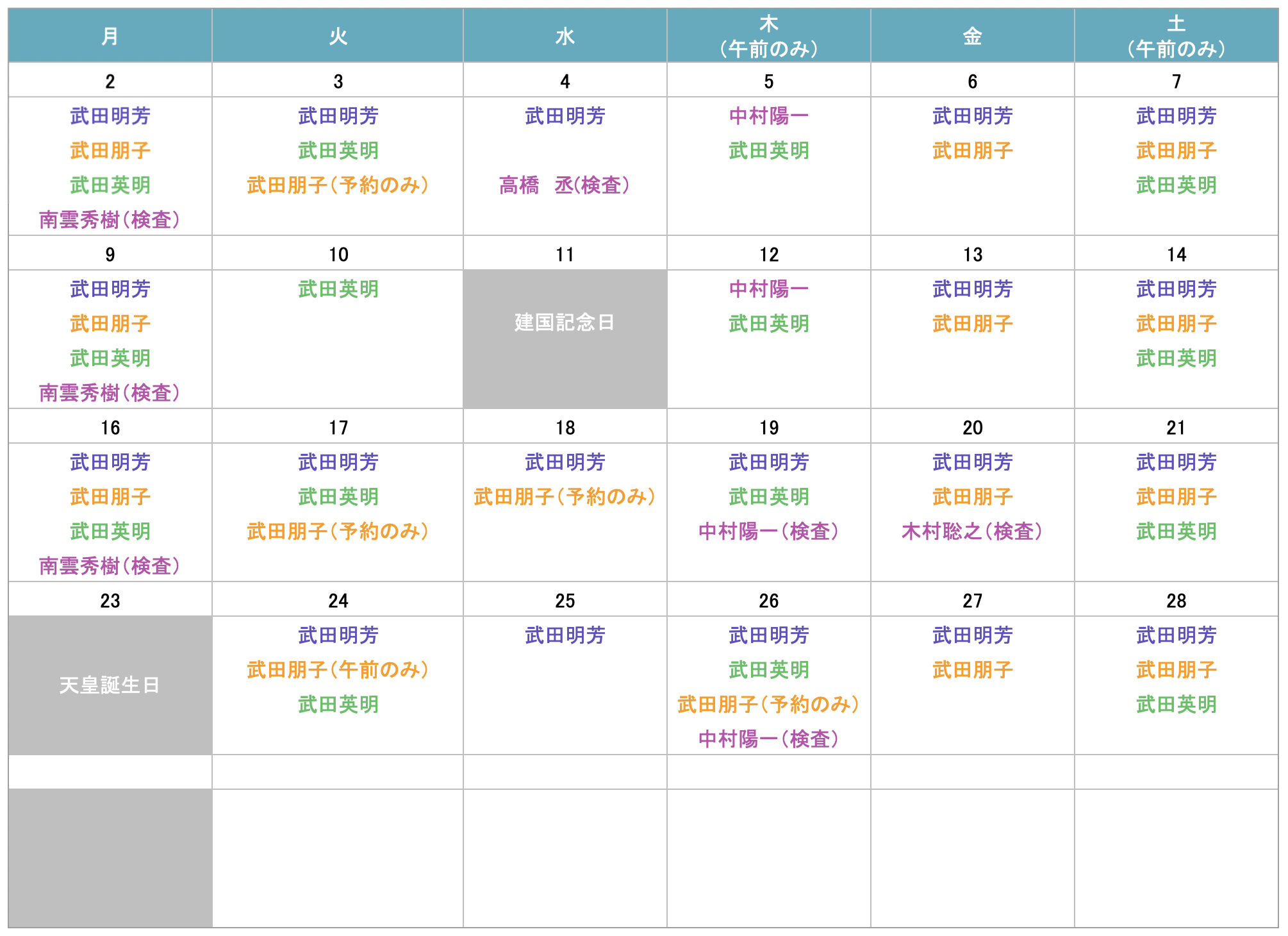 | 武田 英明 | 整形外科、内科 |