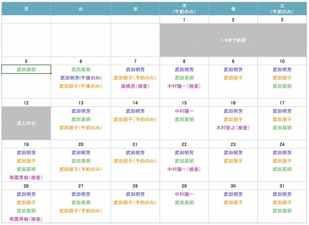 - 休日の翌日や午前中の診療時間は混雑することが予想されます。